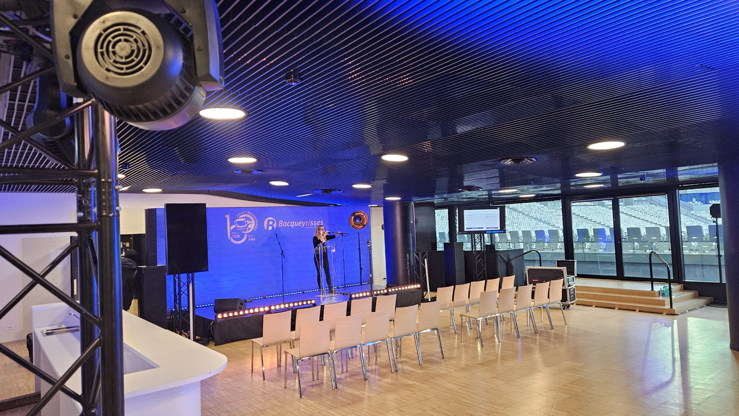 Pour célébrer les 100 ans du groupe Bacqueyrisses, une soirée spéciale a été organisée au Stade Atlantique Bordeaux Métropole.Plus de 1000 invités ont pu revivre une siècle d’histoire du bus à travers un parcours lumineux, une exposition et un show au coeur du stade. Nous sommes fiers d’avoir assuré toute la partie technique audiovisuelle de l’événement. Un beau en collaboration avec la Maison du Bonheur.